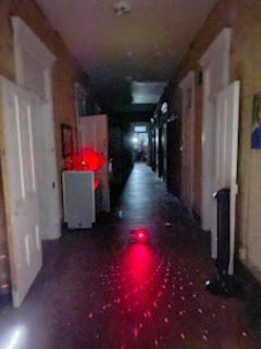 Once the team is equipped and ready to start, it’s time to go dark. Matt turns the museum’s lights out building-wide, and the group – consisting of myself, Damon and Fred, team members Adam and Mark, my husband Daytona, and Matt head for the notorious upper west wing. The upper west wing is known to be an energetic source of activity, often leaving visitors and investigators feeling ill or anxious.