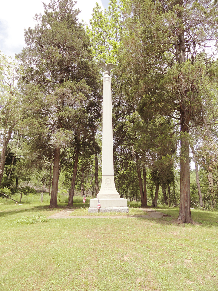 This second monument was a grand statement. It is an obelisk, over 35 feet tall, and topped with a granite carved eagle whose wingspan measures over five feet. The whole monument is reputed to weigh over 55,000 pounds. At the base an inscription reads: “Erected in their memory by I. N. Dreamer.. Inscriptions are carved on each of its four faces: