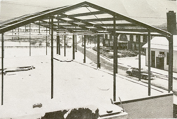 This photo is a point in time to remember – It’s 1950 and Nemacolin’s new UMWA headquarters on Pershing Boulevard is under construction. The basement that will someday house the post office is already done and the steel girders of the walls and roof frame the center of town. It’s a snapshot in time that will soon be gone – the old post office in the company parts store building burned in 1961 and the Nemacolin Supply Company store in its heyday, complete with decorative shrubbery.