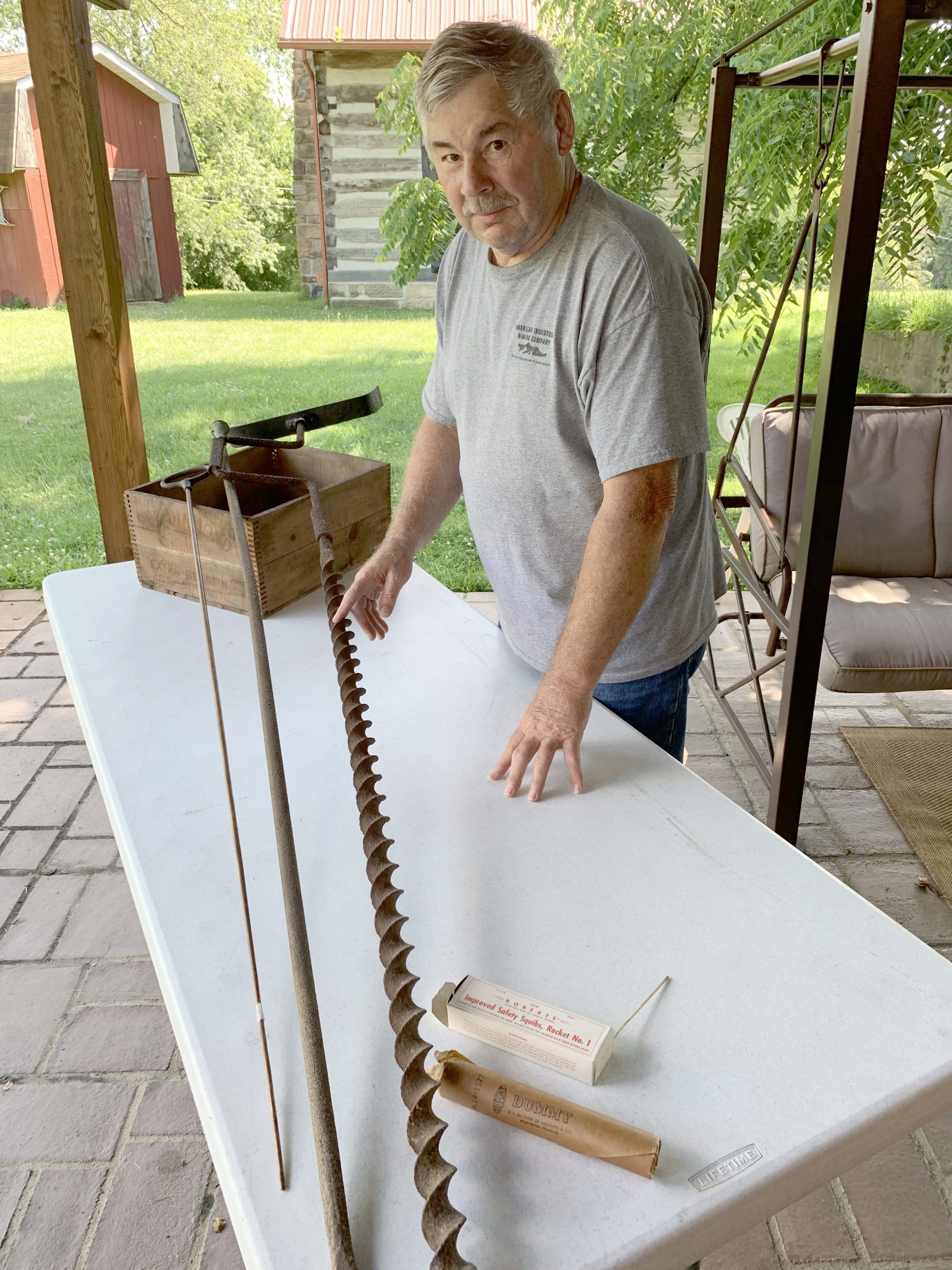 Brice Rush explains how a hand auger like the one used by John Fox was operated for shooting coal.