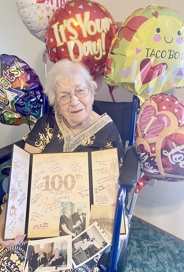 It was the day before Edna “I go by my middle name Lucille” Tharp’s 100th birthday and the kitchen of her home on Easy St. in Waynesburg was filled with family. Some gathered around her, hands busy turning fruit and croissants into kabobs and sandwiches for the many visitors who would drop by on February 24.
