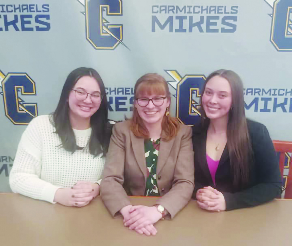 Students at Carmichaels Area School District are celebrating this spring– three members of the high school Academic League were privileged to represent the school on KDKA’s student trivia show “KD Quiz.” Survey says, “the results came back even better than the team could have hoped.” Senior Alexandria Miller, and Juniors Olivia Mata and Emma Bates, under the leadership of team sponsor and coach Mr. John Hess, were thrilled to take first place in the televised knowledge competition that aired Saturday, March 8.