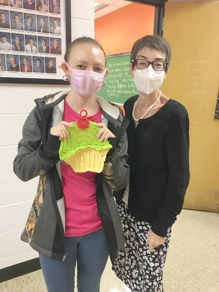 A recent book by the actress Sutton Foster, named Hooked, also attributed crochet and crafting to her stress management. In a quote from the book Hooked, Sutton also mentions how everything you create is a “time capsule and an heirloom” and that creating a craft is making memories. That’s what the crochet club students at Jefferson-Morgan are doing – making memories with camaraderie and service to others, while learning new skills.