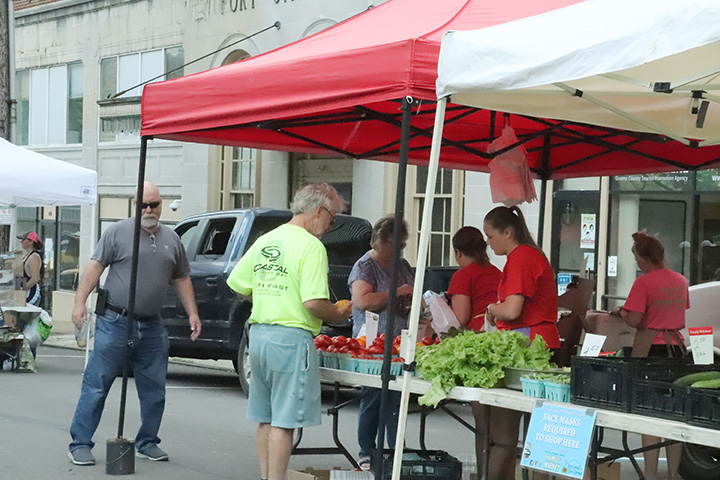 Vendors for the Tuesday Farmers Market include BroChacho’s Salsa, Kiln To Table, Rebecca’s Garden, Dyer’s Fork, Willow Tree Bakery, artist Bobby Lane, Lil’ Chicks Candle Wicks, Sue Fowler’s wooden flower arrangements, Thirty-One Bags, Daugherty LLC, Thistlewaite’s Vineyards, Heritage Craft Butchers, Neens Soaps n’ Such, and artist Eddie Spaghetti.