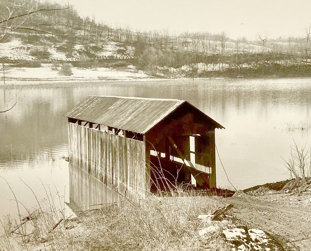 This haunting photograph was taken by Richard Morgan and ran in the Observer Reporter in the winter of 1959. The old Lazear farm had been purchased by the Commonwealth and now 67 acres of bottomland that once grew enough corn to take to market was filling with water behind its brand new dam.