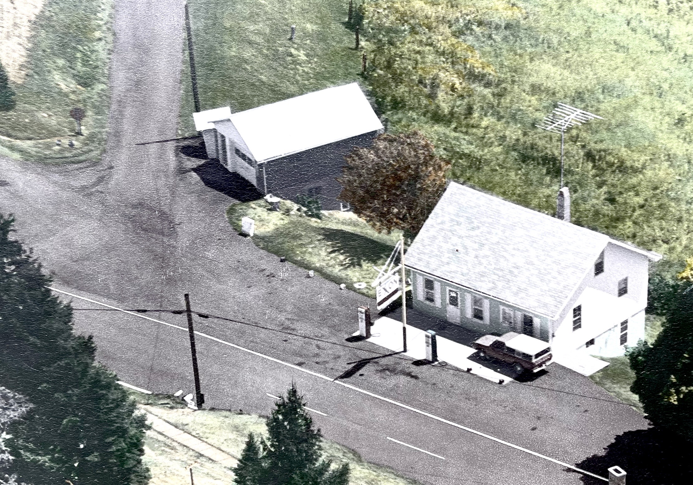 The house that sits at the top of Grimes Hill gives little indication it was once one of the many small mom and pop service stations that studded State Route 18 from East View to Garrison. But thanks to this aerial photograph that Charles Thomas had taken when he and his family owned and operated the store, we have a birds eye view of what it looked like in the 1970s. The EXXON sign and narrow standing pumps are a time stamp, as is the truck. The building sits at the fork where Toms Run and Triumph meet the highway. Turn left on Rt. 18 and it’s 13 miles to Hundred. Turn right and it’s 14 miles to Waynesburg. In the 1970s you could pull in, get gas your gas pumped and maybe buy an RC Cola and grab a loaf of bread if you didn’t feel like driving to town. The store would open when Charles Thomas got out of bed. And like Walmart, it was even open on Christmas.