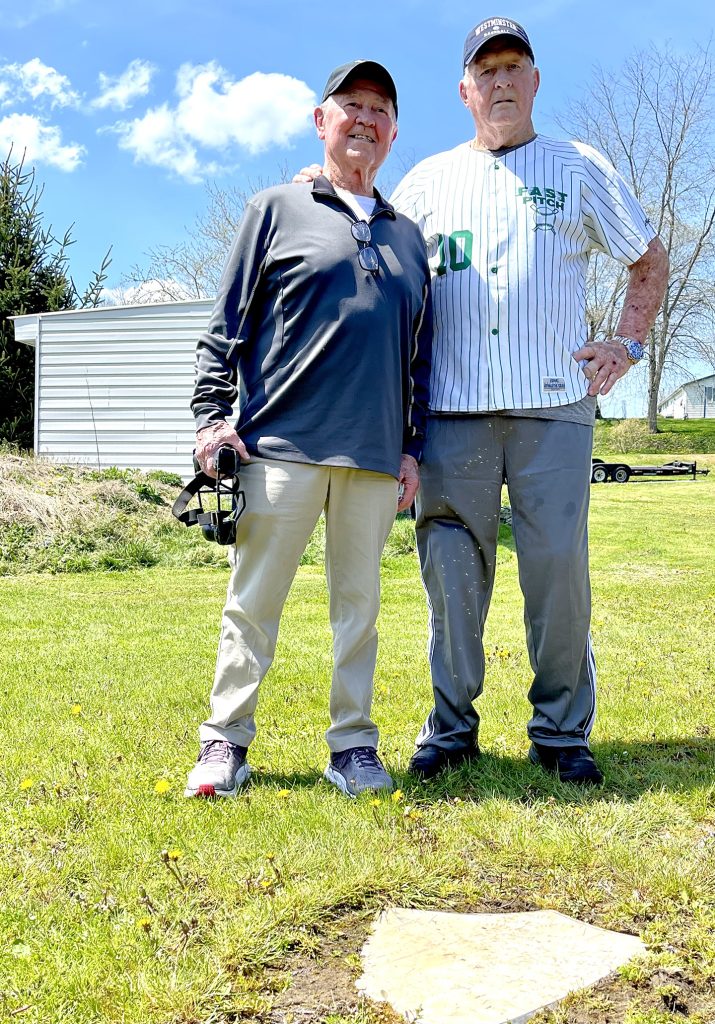 It was the kind of bright spring day that shouts “let’s go out to the ballgame!” when I met up with Pete Walker and his old teammate Marty Doney. We were standing on the edge of an expansive field across the road from the sprawl of old industrial buildings built by Peoples Natural Gas in 1907, now owned and operated by Anderson Fittings. On the far side of the field, a row of houses rim the hill where the streets of Brave crisscross before heading out of town on Kuhntown Road.