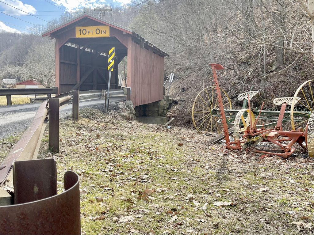 Here on the eastern side of town a small, well tended covered bridge strikes a picture perfect pose as it crosses Fish Creek. Lori’s Cup of Joe Coffee Cabin along the trail is wonderfully adorable but unfortunately closed so I headed to Hundred Library just as school was letting out across the road to learn more about this DIY town that’s been holding on to its history and sense of community even when the weather’s against you for decades, maybe centuries. I finally got myself loose from this place where I’m making new friends just by stopping by and headed home to Greene County.