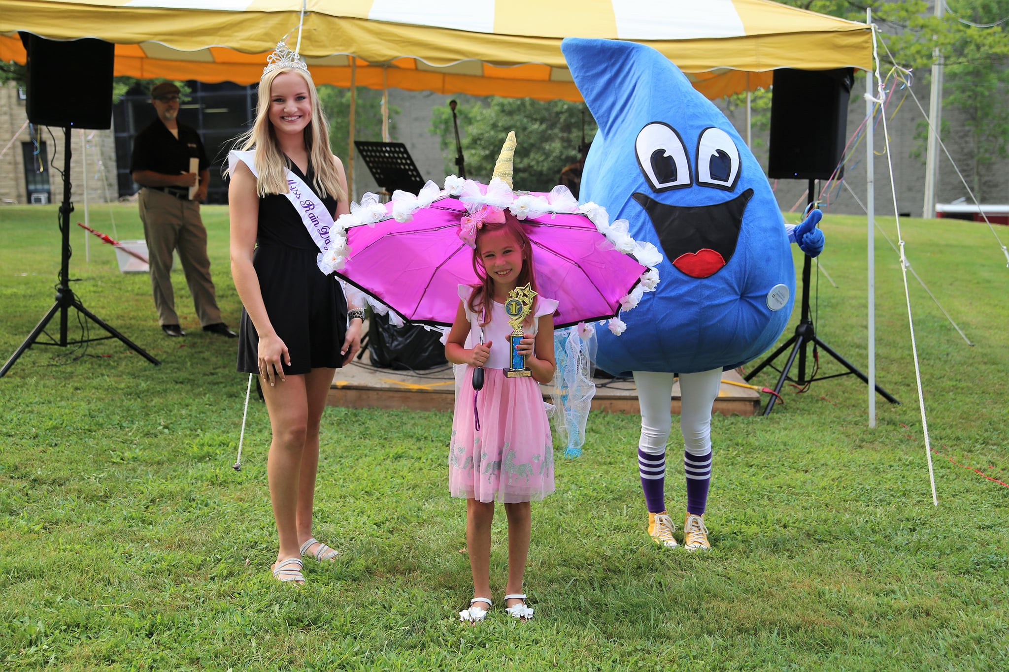 Wayne’s first official outing was at the Food Truck Festival in Washington, PA. Since then, he’s been seen at other local events such as Sheep & Fiber Fest, Riverfest, the Jacktown Fair parade, car shows, mascot races, and has even attended Wild Things games in Washington. “Wayne Drop is one of our biggest tools to promote the Rain Day Festival by attending Greene County, Washington, and Morgantown events. We try to include Wayne Drop in as many events as possible and if our candidate is available to do them. Most candidates have other jobs, and this is a part time position.”