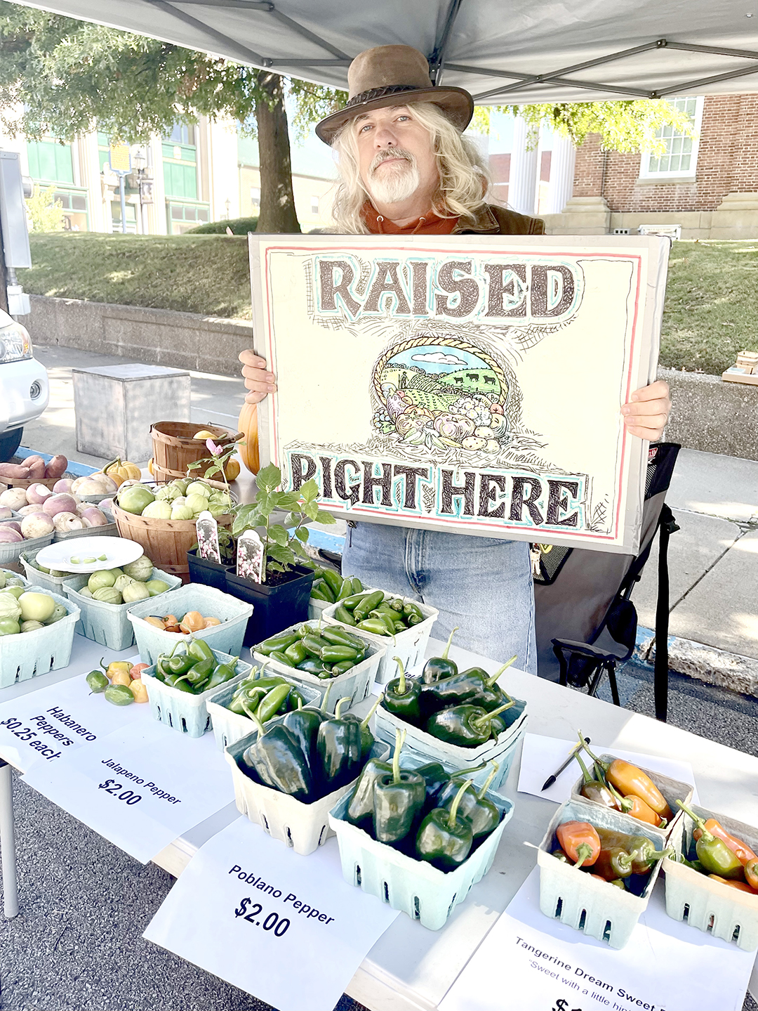 As I scooted through alleys looking for a place to park and shop Waynesburg Farmers Market last May, I was on a mission. Spring was here. It was time to visit with old friends, find something homemade and delicious to eat, then grab some exotic plants for my garden, and make a dash for my car. Washington Street was closed to traffic for a block beside the courthouse to accommodate vendors and market shoppers. Harden Family Farm’s big truck and rows of tables filled the corner next to High Street and new market manager Scott Hackenburg had his Pursley Creek Farm canopy pitched beside the courthouse wall. He had what I’d come looking for: exotic peppers and tomatoes of every color and size, along with native perennial wildflowers like columbine. Other vendors were selling their own spring collection of plants, flowers, fresh greens, and baked goods that have earned their own loyal following. A food truck at the end of the block was serving sandwiches to a line of office workers out for lunch. All in all, it was a perfect sunny spring day, the kind of day that makes farmers’ markets such a beloved part of small town living.