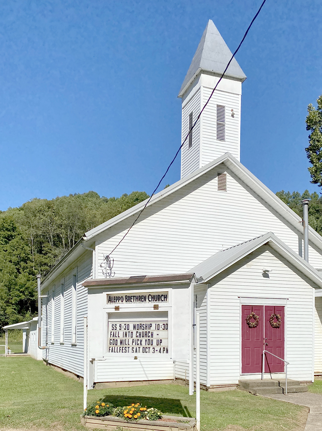 When writing about the township and village of Aleppo for the GreeneScene Magazine last October, I found this intriguing piece of history from this very rural corner of Greene County: “Lives were greatly improved when gas and oil speculation ushered in the ‘progressive era.’ By 1887 the township had ten schools, 448 students and the Aleppo Brethren Church brought its old church, along with its bell and organ, down from Fairview ridge and rebuilt it on Aleppo Road within sight of town.”