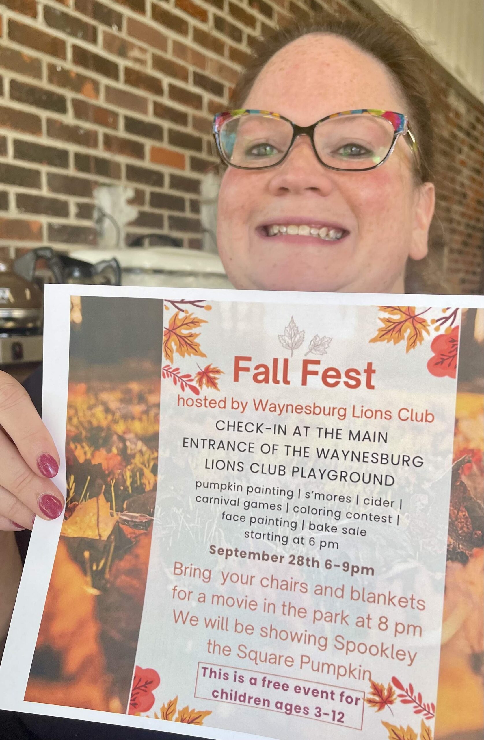 I met up with Mandie Ague at Lions Club Park on Saturday, September 7 to get her hot off–the-press flyer for the brand new Fall Fest for this story. “It’s our first one and we’re excited!” She and fellow Lion Emily Shultz are in charge of what will hopefully bring out huge great bunches of kids to a free festival just for them. The fun, games and a movie will be held while it’s still warm enough to snuggle outdoors at dusk with blankets and get in the spooky mood for what October will bring—piles of leaves to jump in, chilly evenings to bundle up for and making just the right costume for trick or treating on Halloween.