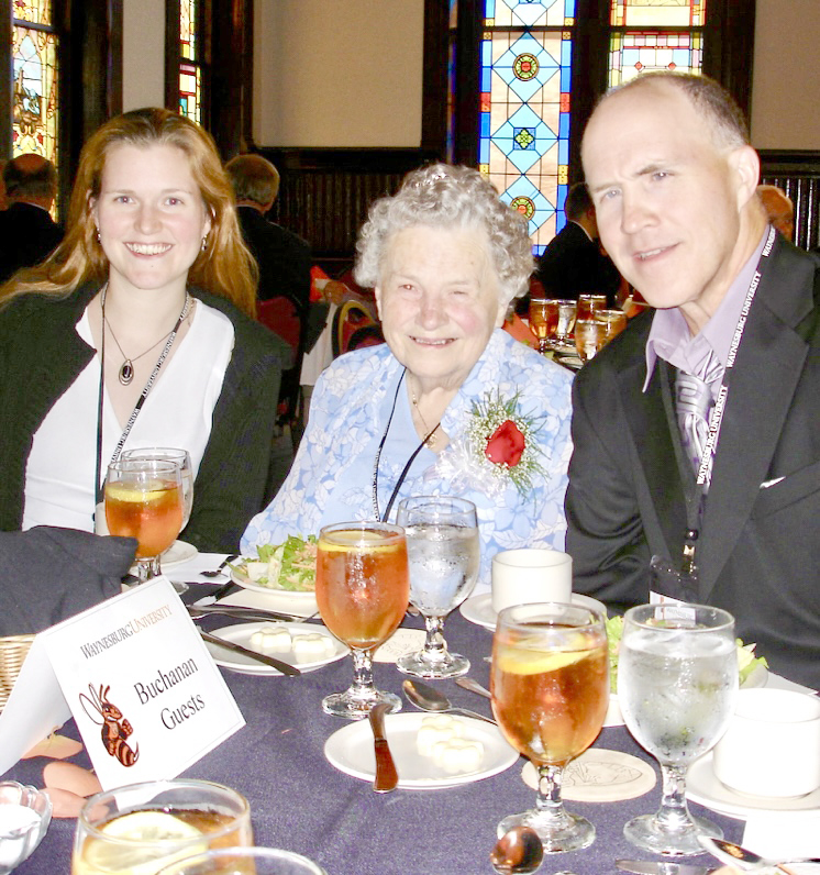 Buchanan’s third generation alumni roots at Waynesburg College go back on to grandmother Sara Livingood Buchanan who graduated in 1938, and dad John “Buck” Buchanan who graduated in 1975. As we texted back and forth for this story, she sent me a photo of the three of them together and smiling in 2008 at Sara’s 70th class reunion in Alumni Hall.