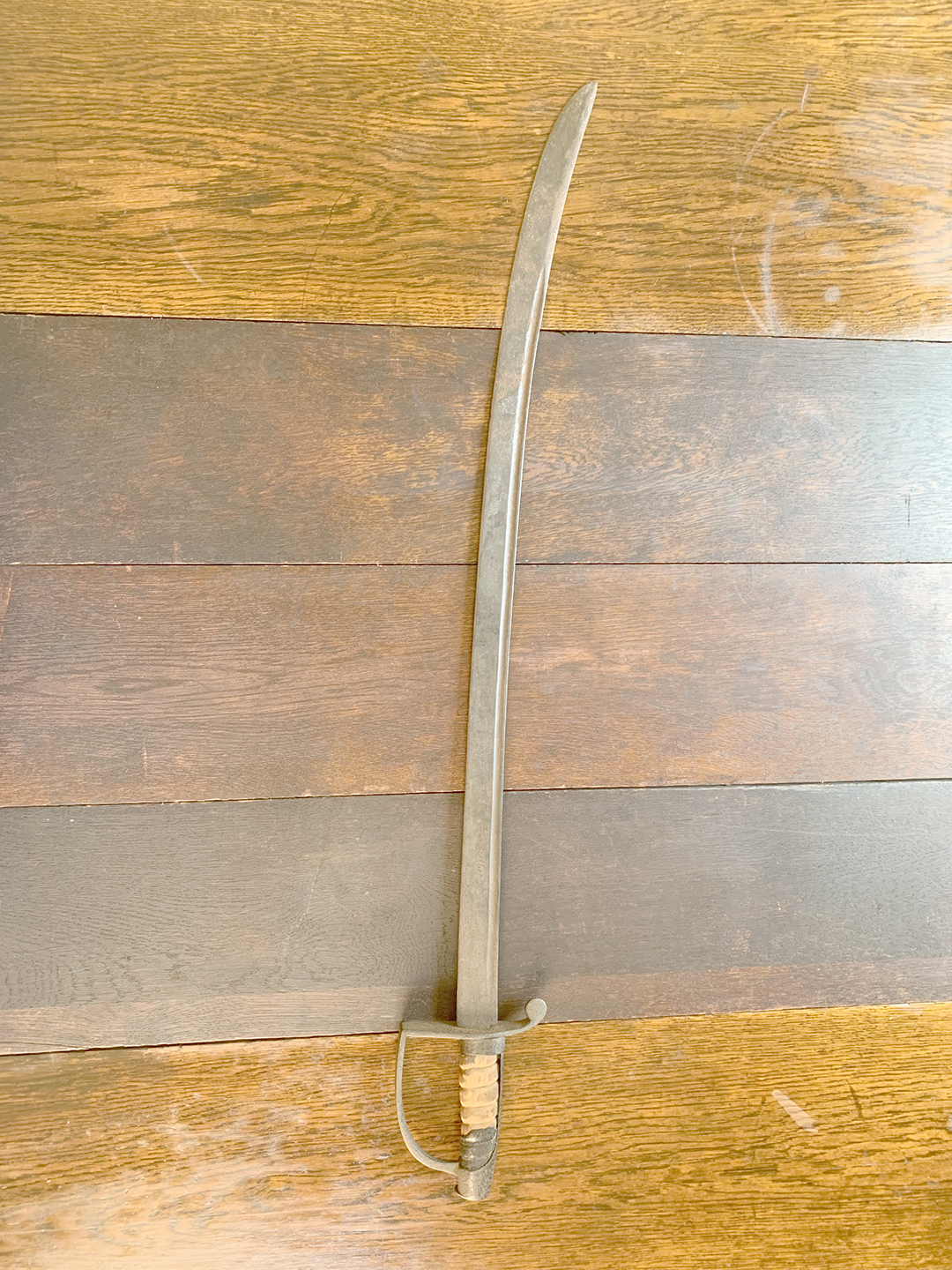 Shown here, as part of the collection of the Greene County Historical Society, is a 1799 Nathan Starr sword, made in the factory he built after his first government contract. For being over two hundred years old, this sword is still in remarkable condition, with a heavy patina and parts of the leather handle covering intact.