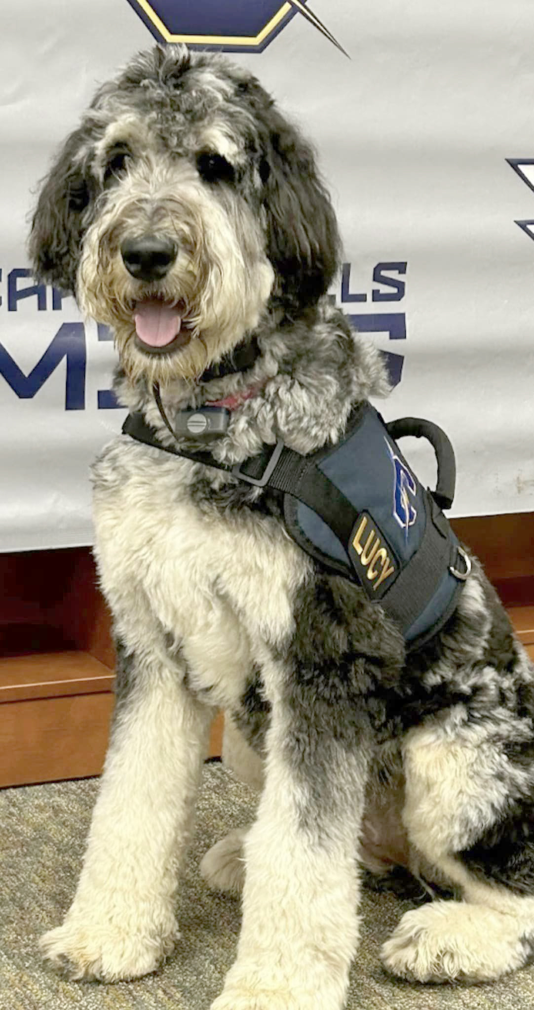 Lucy’s typical workday begins early, with she and Cassie arriving at the high school around 6:30 a.m. By 7:30, Lucy is poised to greet students as they enter the building; she then retires to the library, ready to serve anyone needing a pick-me-up throughout the day. During Cassie’s prep and lunch periods, she takes Lucy to visit the elementary students across campus, sometimes reading with them, and always spreading the puppy love. “We are willing to change our daily routine to accommodate anyone that might need some Lucy time,” says Cassie.