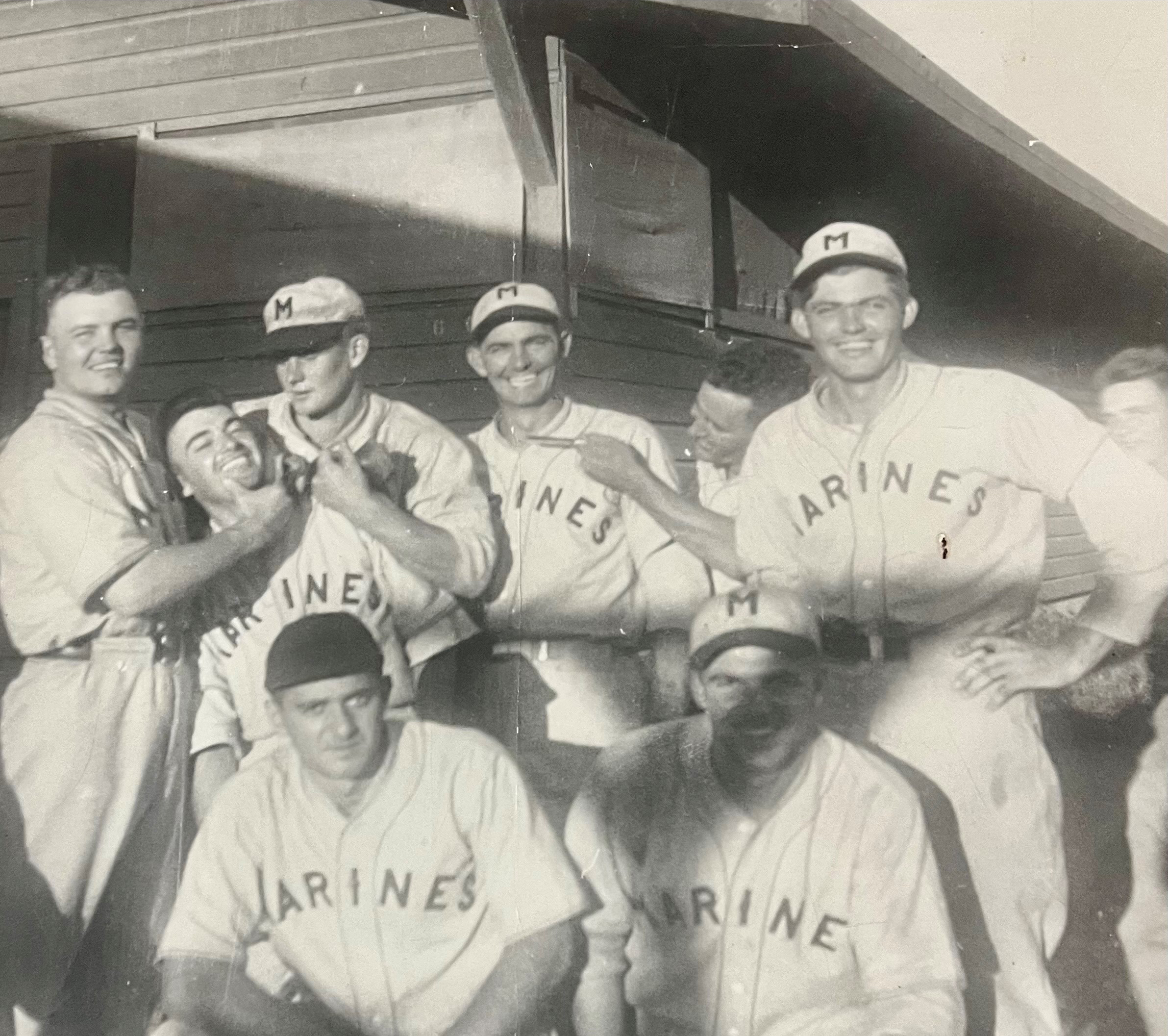 Before the Island campaign began, the troops were training and awaiting deployment in Hawaii. Baseball was one of the rare entertainments available to the soldiers and the locals. Thousands of spectators would turn out to watch teams representing various branches of the service face off against one another. The level of competition was intense given the quality of the players. A Honolulu sporting goods store sponsored the Williams Equipment Player of the Week Award. In early March, Ferek received the award after tossing a no-hitter against a Coast Guard team. A month later, a guy named Joe DiMaggio won the same award. In July, Dodger legend and Hall of Famer Pee Wee Reese was the recipient.
