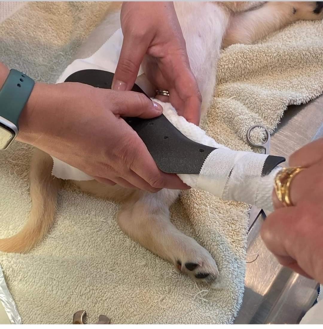 It is not often that a veterinarian’s office and a high school science teacher join forces, but that is exactly what recently happened at Braden Run Animal Hospital. In June, the hospital had a patient – a puppy with an injured leg. Her leg was fractured, and the puppy had been previously seen at an emergency hospital, where the leg was splinted. However, the splint was displaced and when the puppy made its way to the staff at Braden Run, its leg fracture had become much worse. The team had a puppy-sized splint at their hospital, but for the wrong leg. After a search, they were unable to locate the correct size splint for the correct leg. The splint they needed was back ordered and the puppy didn’t have the time to wait. That’s when the staff at Braden Run reached out to Carmichaels High School teacher Mr. Jared Rastoka.