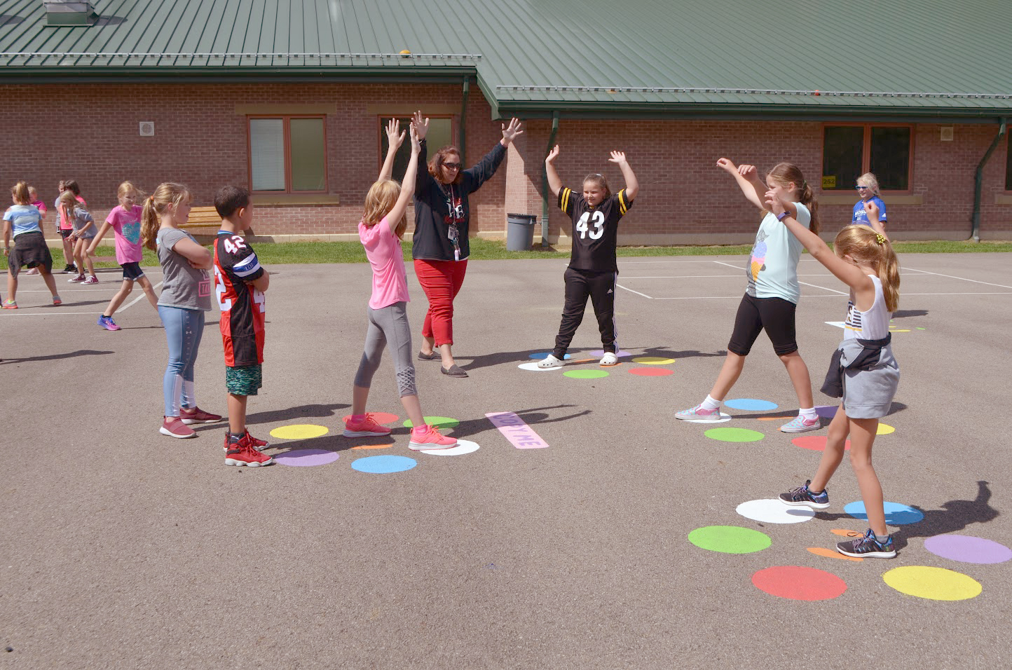 Kellie-Ann Maute, 4th grade teacher at WCES and Wellness committee member, leads the Jump and Move program.  “We’re very focused on the health and wellness of the students within Central Greene School District,” says Kellie-Ann. The Jump and Move playground “was created in hopes that it would lead to increased physical activity for the students,” she adds.