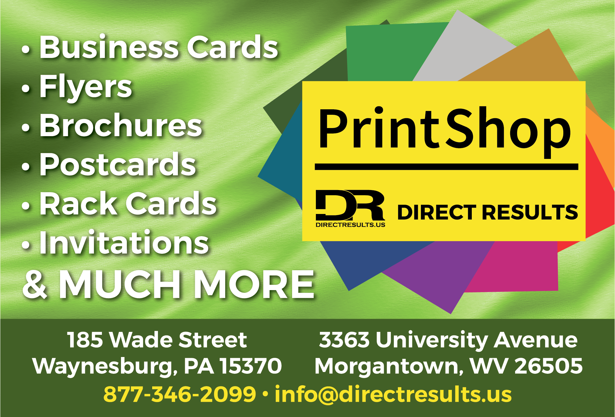 Your business needs to stand out among the rest!  Create an impact with current and potential customers by allowing Direct Results to create printed marketing material that is creative and on brand.  Our team of talented graphic designers, production specialists, and sales representatives are ready to work for you!