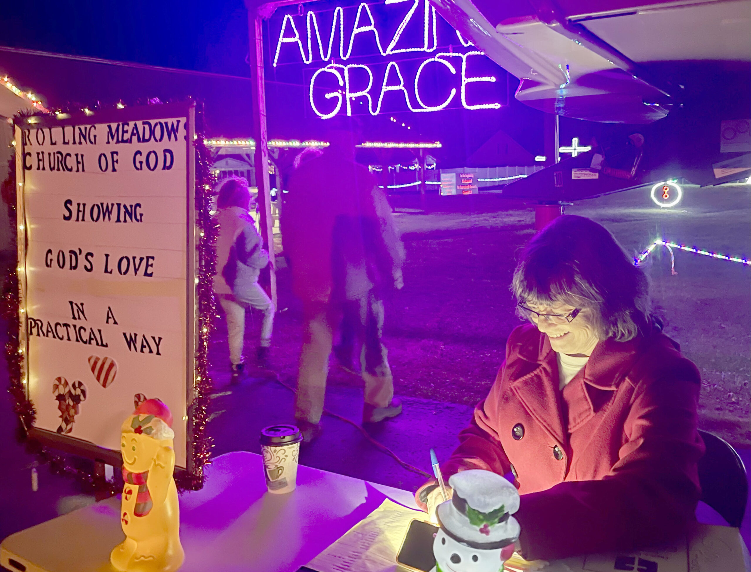 Last year, it was Pastor Burkey and son Richard who drove to Florida to bring home many of the handmade wired figures that are lighting up the night tonight. Pastor’s brother Raymond worked for Campus Crusader for Christ in Florida and was donating the light show so Rolling Meadows could put on its first display for Christmas 2022.